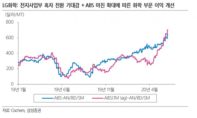 신규 편입된 LG화학의 경우 전지사업부 뿐만 아니라, 주요 제품(ABS) 마진 확대에 따른 화학 부문의 이익 개선이 기대된다고 강조했다.