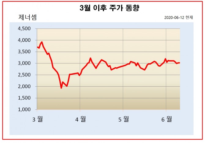 제너셈의 주가는 올해들어 큰 변동이 없었지만, 지난달에 비해서는 5% 상승 했다.