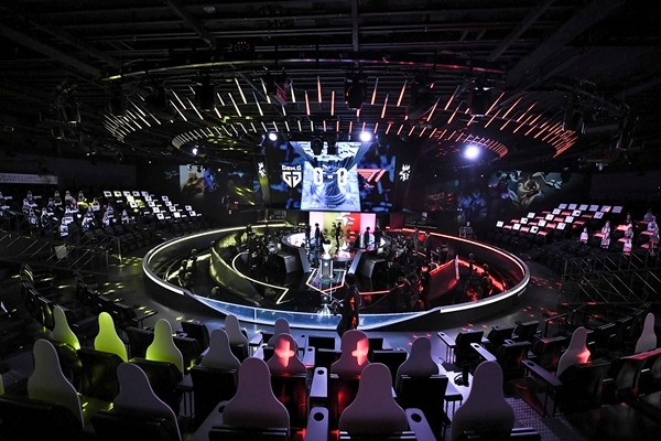 지난 4월 서울 종로구 그랑서울에 위치한 ‘LoL 파크’에서 열린 ‘T1’과 ‘젠지’간 2020 LCK 결승 경기 현장. 사진=SKT이미지 확대보기