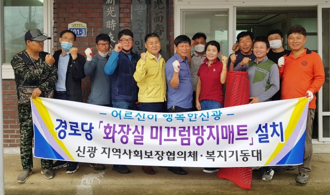 특히, 다가오는 장마철을 대비하여 노인들이 가장 많이 이용하는 경로당 화장실에 매트를 설치함으로써 노인들이 일상생활에서 오는 안전함으로