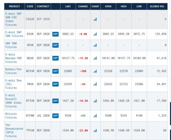 E-mini S&P 500 Futures ESU0 SEP 2020 SEP 2020 3083.50 -6.75