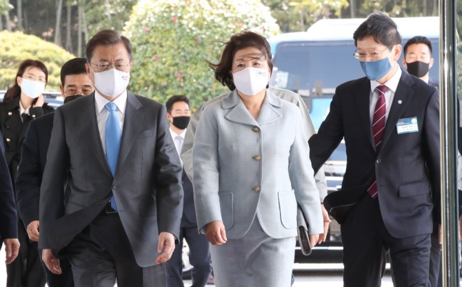 문 대통령 부부는 동행세일 기간 중 지난 1일부터 사흘간 진행되는 '라이브커머스 특별방송' 특별행사 현장을 찾았다.