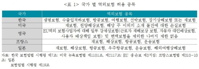 기업성 보험의 경우 재보험 등 국제거래관계가 이미 존재하고 역외보험에 대해 외국보험회사의 지급능력이나 재무건전성을 분석할 여건이 마련돼 있지만 가계성 보험의 경우 어려움이 존재한다.