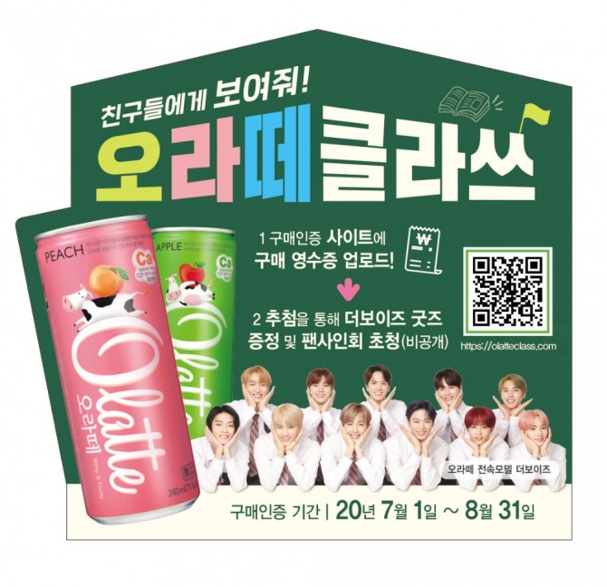 이미지 확대보기이벤트 참여는 동아오츠카 공식 페이스북 내 이벤트 게시물에서 하면 된다. 이마트24, 슈퍼마켓, 학교 등에 부착된 오라떼X더보이즈 홍보물을 사진 촬영한 후 댓글로 남기면 된다. 동아오츠카는 추첨을 거쳐 총 30명에게 더보이즈 사인CD를 증정할 예정이다.