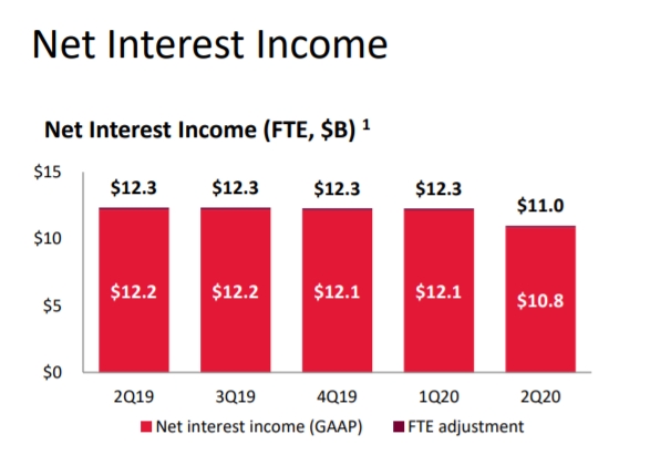 대출 부문에서 신용 손실 충당금을 40억달러 늘렸으며, 금리 인하로 이자 수입은 11%감소했다.