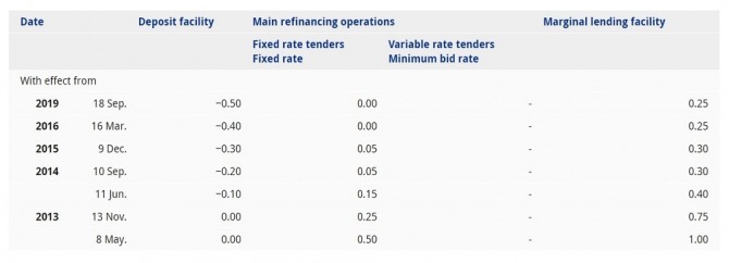 유럽중앙은행(ECB) 금리 변동 추이. 사진=ECB 홈페이지