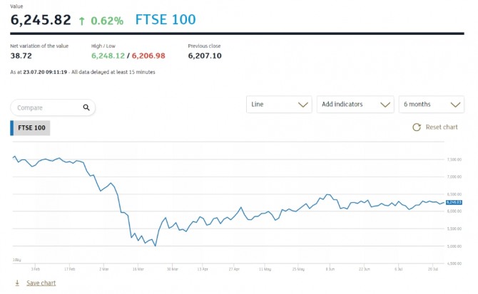 영국 FTSE 100 지수는 전 거래일 대비 0.62% 상승한 6245.82에 거래되고 있다. 자료=런던 증권거래소