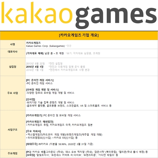 카카오게임즈 기업 개요. 자료=카카오게임즈