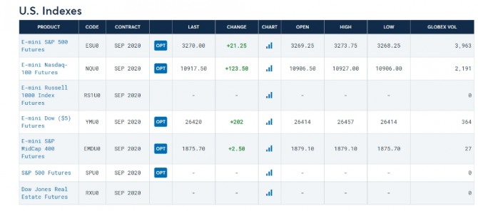 E-mini S&P 500 Futures ESU0 SEP 2020 SEP 2020 3270.00 +21.25