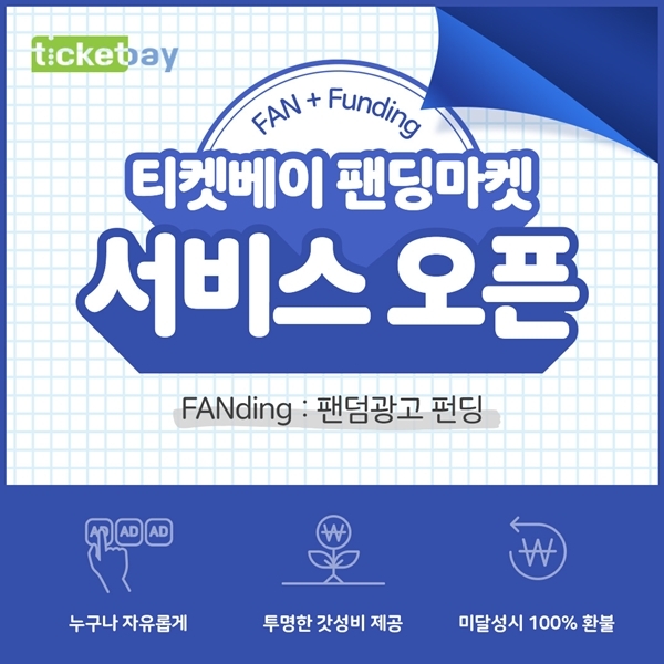 이미지 확대보기팀플러스(대표 한혜진)에서 운영하는 티켓 중개 플랫폼 티켓베이는 팬들이 함께 만드는 케이팝 광고 펀딩 ‘팬딩마켓(FANding MARKET)’ 베타 서비스를 오픈했다고 3일 밝혔다.