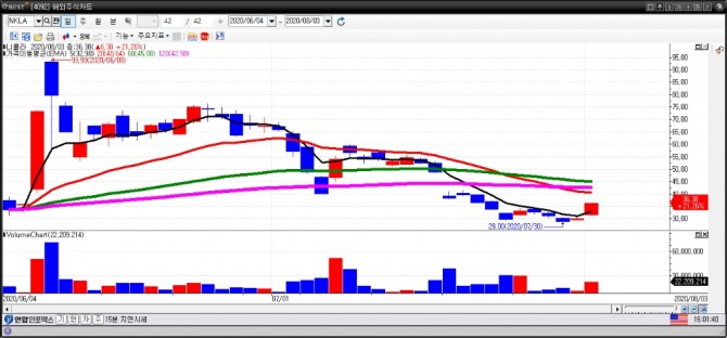 이미지 확대보기니콜라의 이날 폭등은 도이체방크가 단기매수 리스트에 추가했다는 소식이 영향을 미친 것으로 보인다.