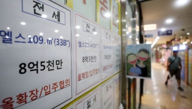 서울 송파구의 한 부동산에 전세 매물 관련 문구가 게시돼 있다. 사진=뉴시스이미지 확대보기