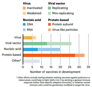일반적으로 바이러스에 대항하는 백신을 개발하는 방법은 바이러스 자체를 활용하거나, 바이러스 백터(DNA 운반체)를 활용하는 법, 핵산이나 단백질을 활용하는 법 등 크게 네 가지 유형으로 구분된다.