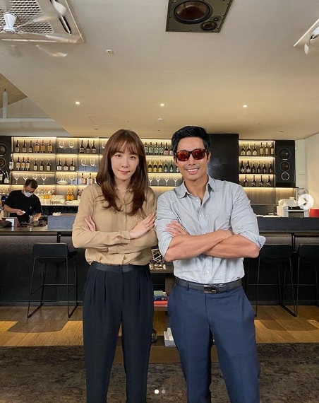 공개된 사진에는 김이나와 이근 대위가 나란히 팔짱을 낀 동일한 포즈를 취하면서 환한 미소를 지으며 카메라를 바라보고 있다.
