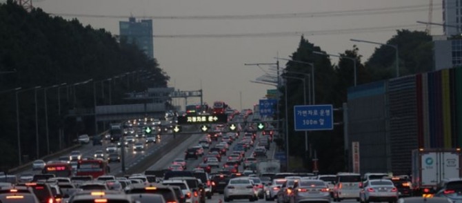 30일 한국도로공사(도로공사)에 따르면 이날 오후 10시 요금소 기준 주요 도시간 예상 소요시간은 하행선 ▲서울~부산 5시간40분 ▲서울~대구 5시간 ▲서울~광주 4시간20분 ▲서울~대전 2시간20분 ▲서울~강릉 2시간40분 ▲서울~울산 5시간40분 ▲서울~목포 4시간40분이다.