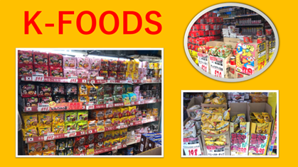 신주쿠점 매장 전면의 한국식품 매대에는 한국 김, 불닭볶음면, 옥수수수염차, 허니버터아몬드 등 잘 알려진 인기제품을 비롯해 다양한 종류의 상품이 진열돼 있다. 신오쿠보 인근에 거주하는 한국인들이 방문하는 경우도 있지만 신오쿠보를 찾은 10~20대가 한국 드라마나 영화에 나오는 제품을 찾는 경우도 많다.