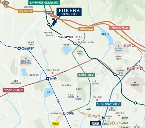 포레나 수원장안이 들어서는 장안구 일대는 서울 접근성이 우수하며 다양한 개발 호재까지 기대되는 곳이다. 실제로 인덕원과 동탄신도시를 잇는 인덕원~동탄 복선전철이 2026년 개통을 목표로 사업이 추진되고 있으며, 지난 9월에는 장안구 이목동과 광교신도시를 잇는 수원북부순환로가 개통돼 교통 여건이 개선됐다.