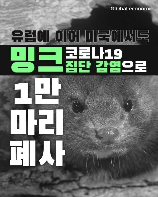 유럽에 이어 미국에서도 코로나 19 집단 감염으로 인해 밍크 1만 마리가 폐사되었다.