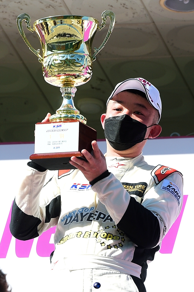이미지 확대보기KSR-GT 시상식 직후 만난 김성희는 모터스포츠 입문 2년차에 접어든 두 아이의 아빠로 본업은 여행사를 경영하고 있는 대표다.