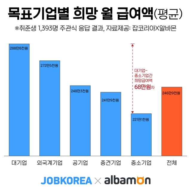 대기업을 목표로 하는 취준생 그룹의 희망급여는 월 평균 288만8000원으로 가장 높았다.