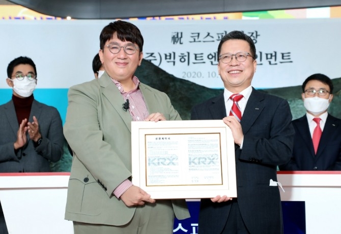 빅히트는 상장 직후 35만1000원에 직행하면서 기대감을 한몸에 받았으나, 바로 상한가가 풀리면서 5거래일 연속 주가가 하락하며 최고가 대비 절반 수준까지 하락했다.