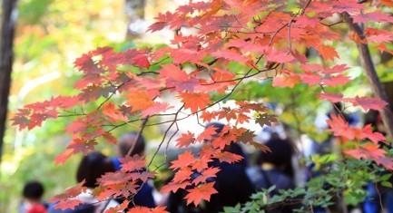 아직 절정의 붉은 빛은 아니지만, 산길 초입부터 늘어선 단풍나무들은 곱게 물든 색을 뽐내며 방문객들을 반겼다.