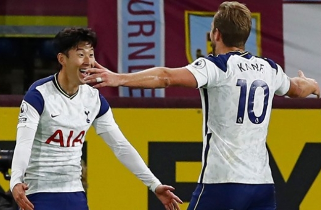 한국시각 27일 프리미어리그 6라운드 번리와의 경기에서 결승 골을 합작한 손흥민-해리 케인 듀오가 기쁨의 세리머니를 하고 있다.