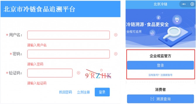 '베이징 콜드체인' 웹 사이트(좌), 위챗 미니 프로그램(우)