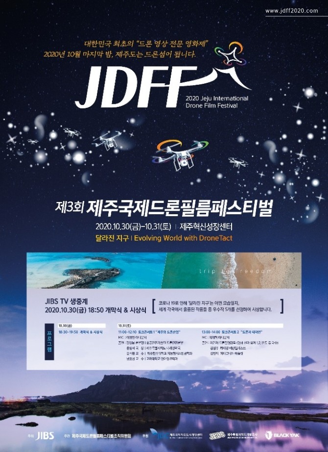 '달라진 지구'를 주제로 개최되는 이번 JDFF는 코로나19로 변화된 인류와 생태계의 모습을 조망하고, 드론이 문화와 예술 분야에서도 중요한 도구가 될 수 있음을 표현하기 위해 마련됐다. 30일에는 경쟁작을 중심으로 개막식과 시상식이 진행되며 31일에는 '제주와 드론산업', '드론과 대자연'을 주제로 한 토크콘서트가 진행된다.