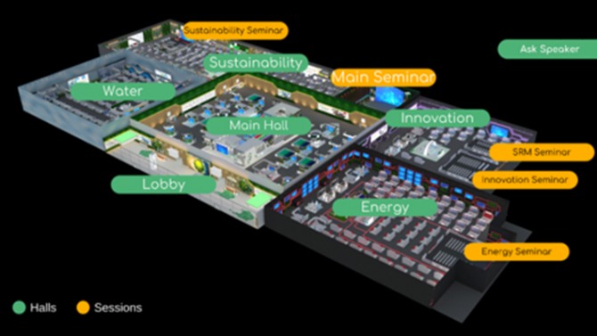 가상 전시회는 UAE 정부기관이 대거 참가한 메인 홀, 에너지(Energy), 혁신(Innovation), 수자원(Water), 지속가능성(Sustainability) 5개 전시관으로 구성됐으며 수자원 전시관을 제외한 4개 전시관에는 별도의 세미나 공간이 마련돼 각 분야의 기업 관계자가 참석해 세미나를 진행했다. 세미나는 녹색경제, 스마트시티, 혁신, 지속 가능한 에너지 등을 주제로 진행됐으며 발표 영상으로 진행되었다.