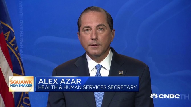 이미지 확대보기19일(현지시간) 미국 경제전문방송 CNBC는 수 개월 만에 열린 백악관 코로나바이러스 태스크포스(TF) 첫 공개 회의에서 알렉스 에이자(Alex Azar) 보건복지부 장관은 이 같이 발표했다고 보도했다.