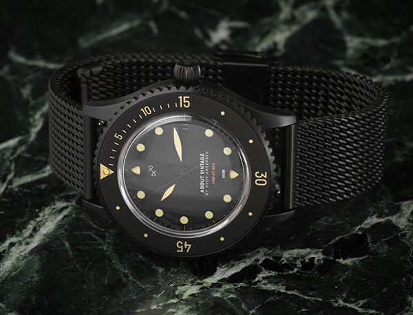 눈부심 방지를 위한 매트 블랙(Matt Black) 다이얼과 블랙 알루미늄 재질의 단방향 회전 바젤, 39mm 사이즈, 심플한 양파 모양의 용두 디자인이 적용됐다.