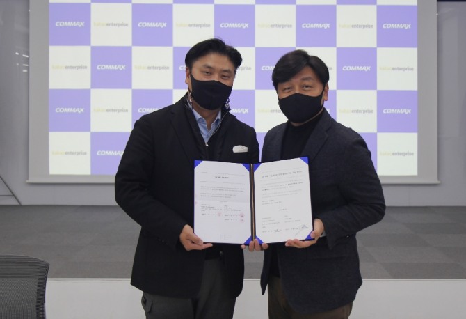 카카오엔터프라이즈는 경기 성남시 중원구 소재 코맥스 본사에서 백상엽 대표, 코맥스 변우석 대표이사 등이 참석해 IoT 공동 사업 계약을 체결했다고 24일 밝혔다.