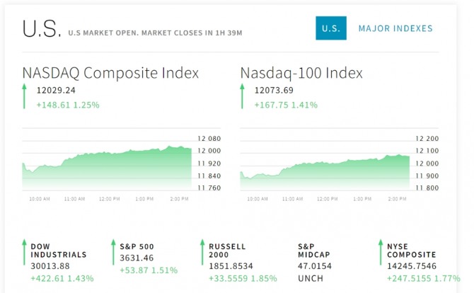 화이자와 모더나 그리고 아스트라제네카 백신 긴급 승인이 다가오면서 뉴욕증시가 환호하는 모습이다.