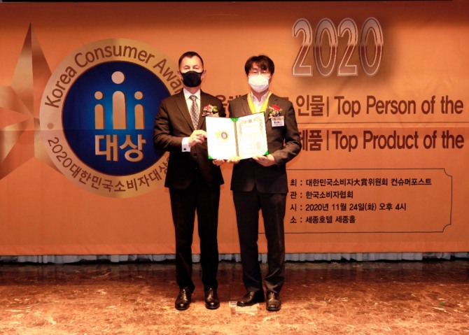 이미지 확대보기24일 서울 중구 세종호텔에서 열린 한국소비자협회 주관 '2020대한민국소비자대상' 시상식에서 올해의 최고 브랜드 부문 수상 영예를 안은 것이다.