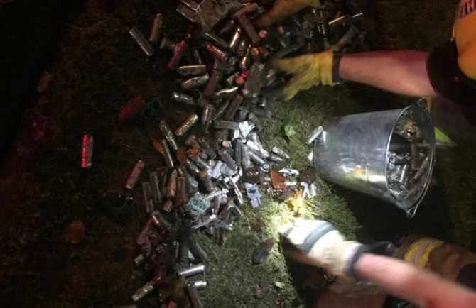 모델3 배터리 폭발로 불 붙은 배터리 셀 날아가 주택에 피해 줘