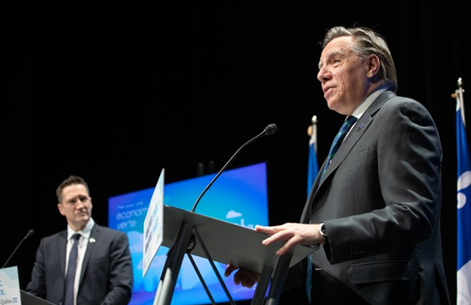 기자회견 중인 프랑수아 르고 퀘벡주 총리