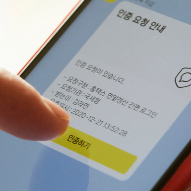 국세청 홈택스 연말정산 간소화 서비스는 카카오톡 지갑을 만들고 계좌 확인 인증을 완료한 이용자라면 누구나 이용할 수 있다. 국세청 홈택스의 간편 인증 로그인 화면에서 ‘카카오톡’ 아이콘을 선택하고 전화번호와 필요 정보를 입력하면 된다. 이후 카카오톡으로 발송된 인증 요청 메시지에 6자리 비밀번호 입력 또는 생체 인증으로 본인 확인을 하면 간편 인증 로그인이 완료된다.
