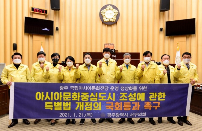 서구의원 일동은 성명을 통해 “지난 1월 국립 아시아문화의전당과 아시아문화원을 국가기관으로 통합하여 운영하기 위한 '아시아문화중심도시 조성에 관한 특별법'(이하 ‘아특법’) 개정안이 국회 법제사법위원회에서 국민의힘의 반대에 부딪혀 문화의전당 조직 ․ 운영의 큰 혼선과 사업추진에 차질을 겪고 있다,”고 밝혔다.
