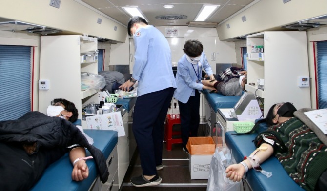 이날 헌혈은 코로나19 장기화로 헌혈의집 방문이 줄고 단체헌혈이 취소되는 바람에 혈액 수급에 어려움을 겪고 있는 상황에서 대한적십자사 혈액관리본부가 헌혈 동참을 요청해 이뤄졌다.