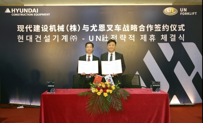 현대건설기계는 최근 중국 지게차 제조업체 UN(尤恩叉車)과 주문자상표부착생산(OEM)을 위한 전략적 제휴를 체결했다고 28일 밝혔다. UN은 중국 저장성(浙江省)에 있는 지게차 생산 전문업체로 연간 중소형 지게차를 1만여 대 생산할 수 있는 강소기업이다.