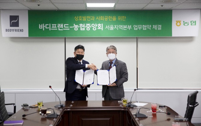 앞서 바디프랜드와 서울농협은 17일 바디프랜드 도곡 본사에서 사회공헌 업무협약을 체결하고, 양 기관이 함께 지속적으로 사회적 가치를 실현해 나가기 위한 첫 걸음을 내디뎠다.