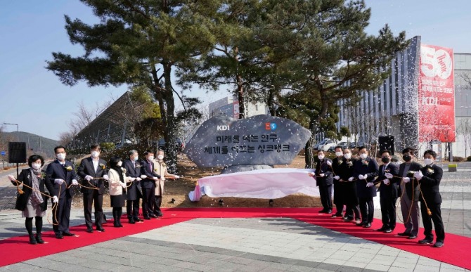 한국개발연구원(KDI)은 23일 개원 50주년을 맞아 최정표 KDI 원장과 성경륭 경제·인문사회연구회 이사장, 장지상 산업연구원장, 조홍식 한국보건사회연구원장 등 유관 기관장과 임직원 등이 참석한 가운데 기념석 제막식을 가졌다.