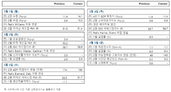 주요 경제지표발표 일정, 자료=NH투자증권이미지 확대보기