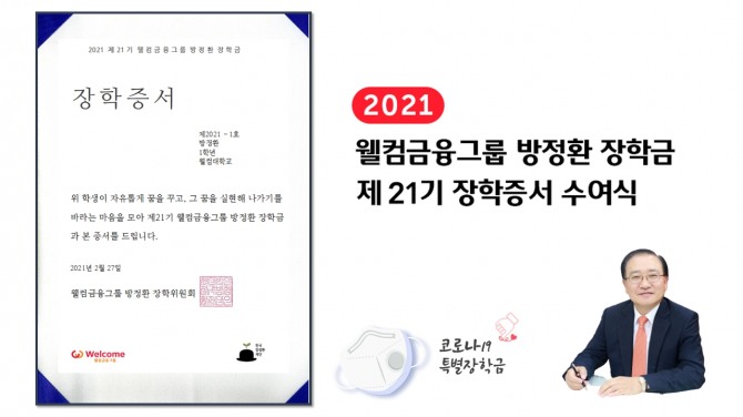 웰컴금융그룹의 순 이익 1% 이상과 임직원이 매월 기부하는 금액으로 조성되는 방정환 장학기금은 매년 두 차례에 걸쳐 가정 및 경제상황이 어려운 학생에게 전달됐다. 올해까지 3300여 명의 장학생에게 45억 원에 달하는 장학금을 전달했다.