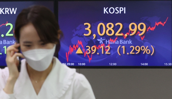 코스피가 3일 3080선으로 상승마감하며 추가상승에 대한 기대가 커지고 있다. 사진=연합