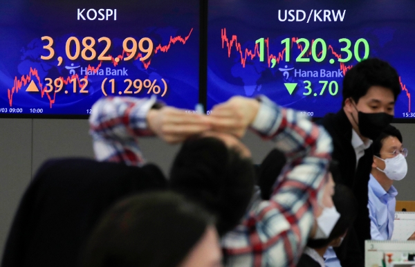 이미지 확대보기이날 한국거래소에 따르면 코스피는 오전 9시 5분 현재 전거래일 대비 1.45%(44.75포인트) 내린 3038.24에 거래되고 있다.