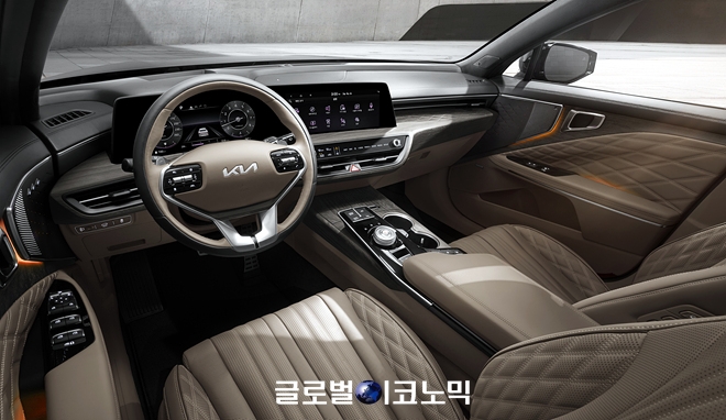 기아는 K8에 12.3인치 커브드 디스플레이 두 개로 구성된 '파노라믹 커브드 디스플레이'를 최초로 적용했다.