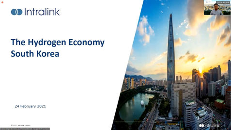 영국 국제통상부(DIT, Department for International Trade)는 지난 2월 24일, 국제 비즈니스개발 컨설팅 기업 인트라링크(Intralink)와 협력해 한국 수소 경제에 대한 웨비나를 개최했다. 인트라링크는 한국에서의 수소부문 비즈니스 기회에 대한 시장정보 보고서 ‘수소경제-대한민국(The Hydrogen Economy-South Korea)’을 최근 공개했다. 인트라링크의 Dilshod Akbarov는 이날 웨비나에 연사로 참석해 영국 국제통상부와 협력을 통한 영국 수소분야의 기업의 기회를 모색하고 그의 조사 결과를 발표했다.