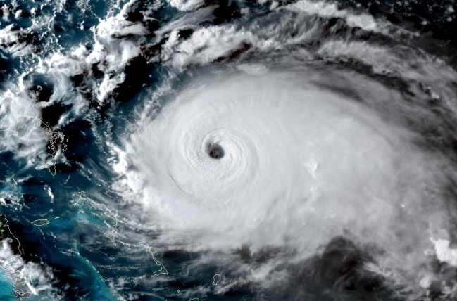 사진은 위성에서 포착한 2019년 9월 발생한 초특급 허리케인 '도리안'의 모습.